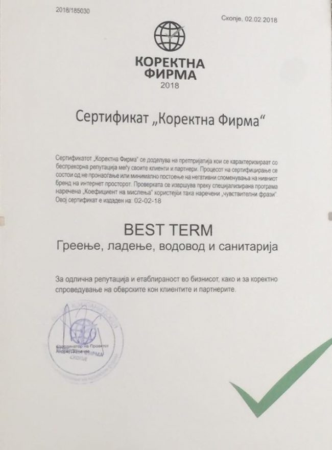 Kompania Best Term, është kompanie e vetme shqiptare në Maqedoni, e pajisur me